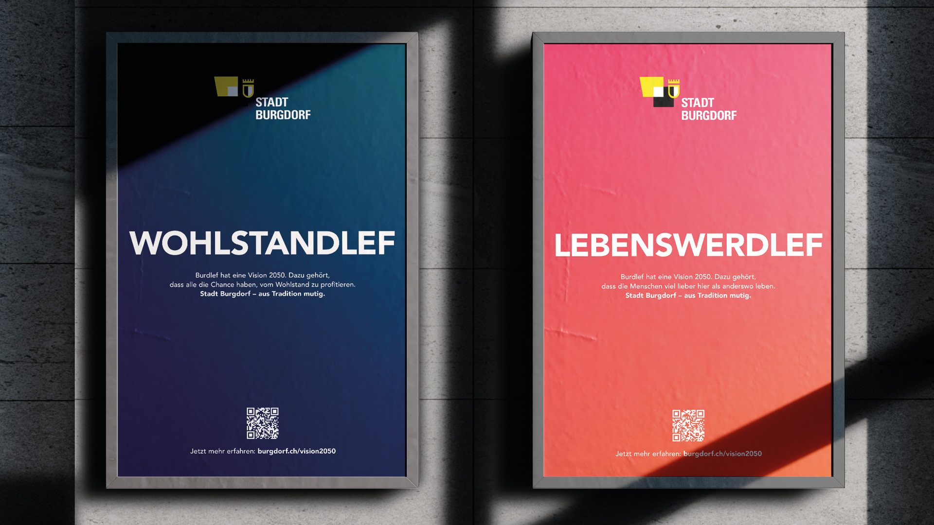 Superlokaler Insight der Plakate, Social Ads und Flyer ist, dass Burgdorf in Burgdorf nicht Burgdorf, sondern «Burdlef» heisst, weshalb sie Schlagwörter aus den verschiedenen visionären Handlungsfeldern der Stadt einfach mit «dlef» enden lässt. Diese identitätsstiftende Werbeidee, die auch ein grafischer Hingucker ist, ermöglicht es der Stadt, mit der Bevölkerung in einen Dialog zu treten – jederzeit, auf allen Kanälen und erst noch mit einem Augenzwinkern. Vor allem aber lässt sie sich als reine Textkampagne kosteneffizient produzieren und mit immer neuen Sujets auch bis 2050 weiterführen.