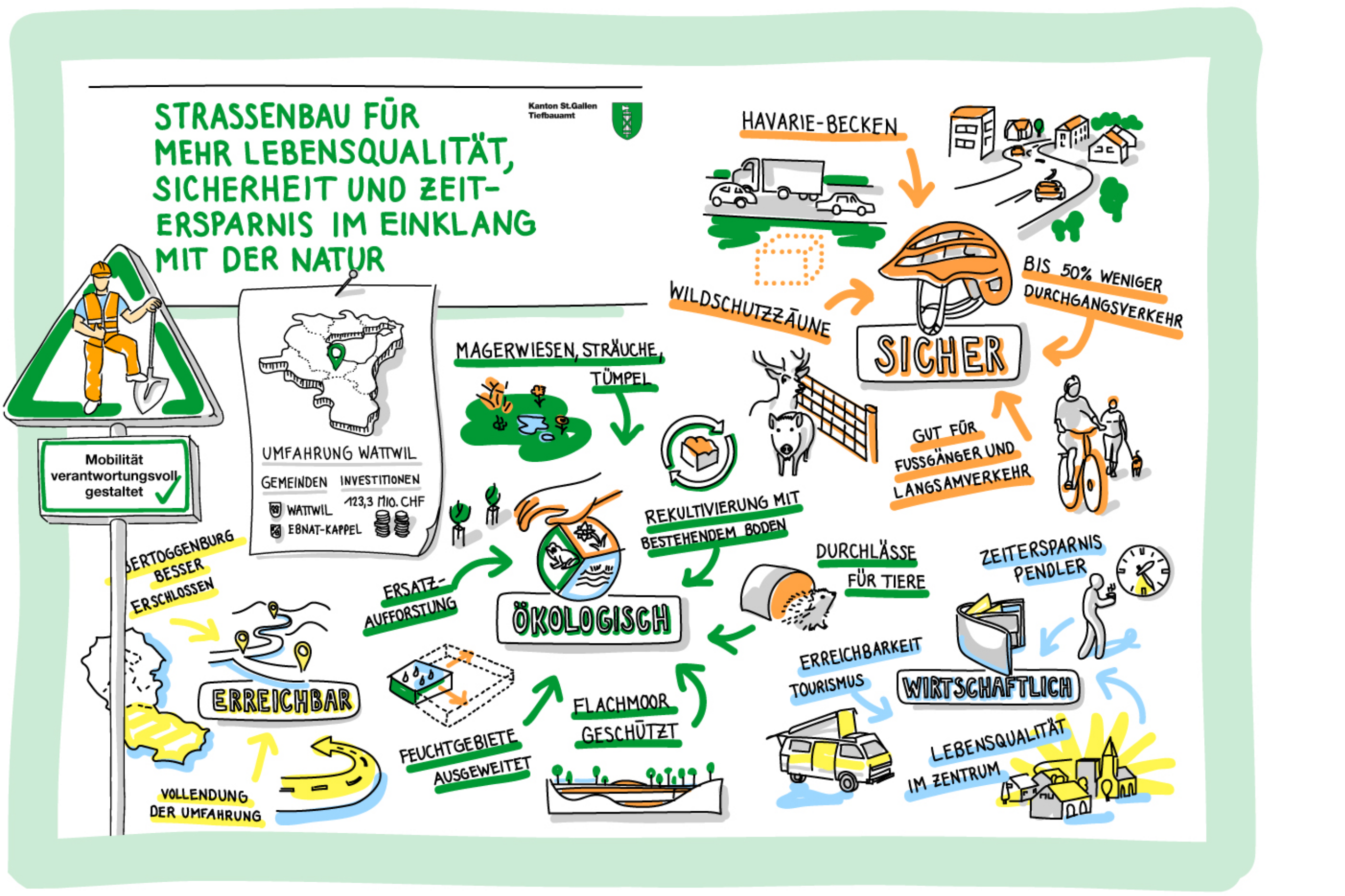 Das Tiefbauamt Kanton St.Gallen gestaltet die Zukunft des kantonalen Verkehrssystems aktiv. Nur sieht die Bevölkerung zuallererst «Baustellen» und zu wenig den vielfältigen Nutzen realisierter Projekte. Die Botschafter haben einen pragmatischen Ansatz entwickelt, genau diesen sichtbar zu machen.